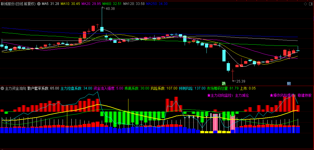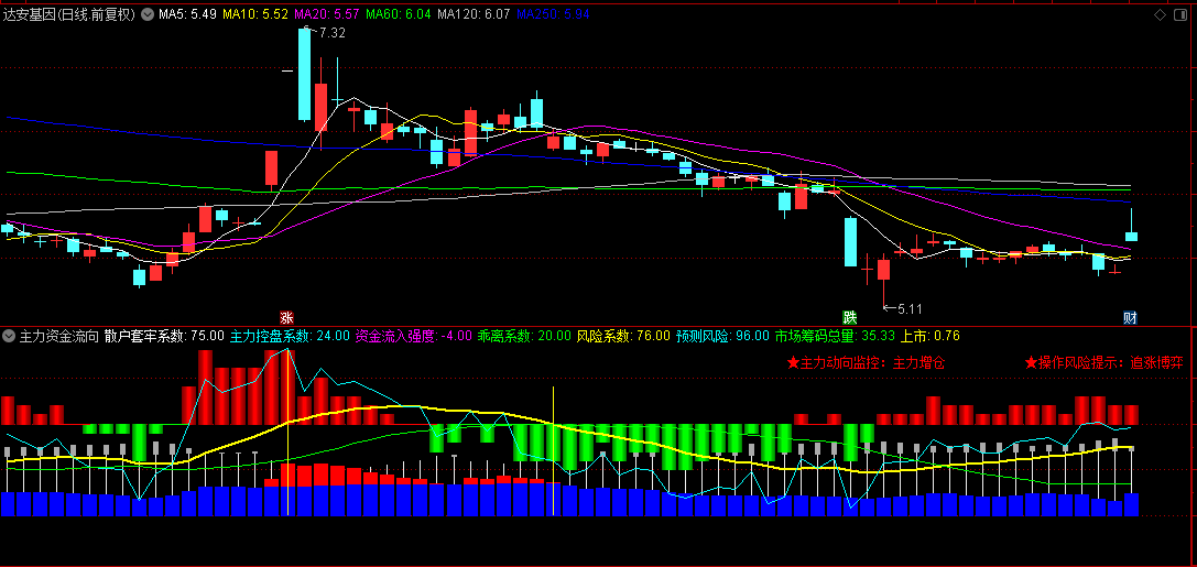需要特别说明的是,该指标通过乖离率、变异KD和获利盘等数据,模拟计算出主力资金流向和市场风险预期。