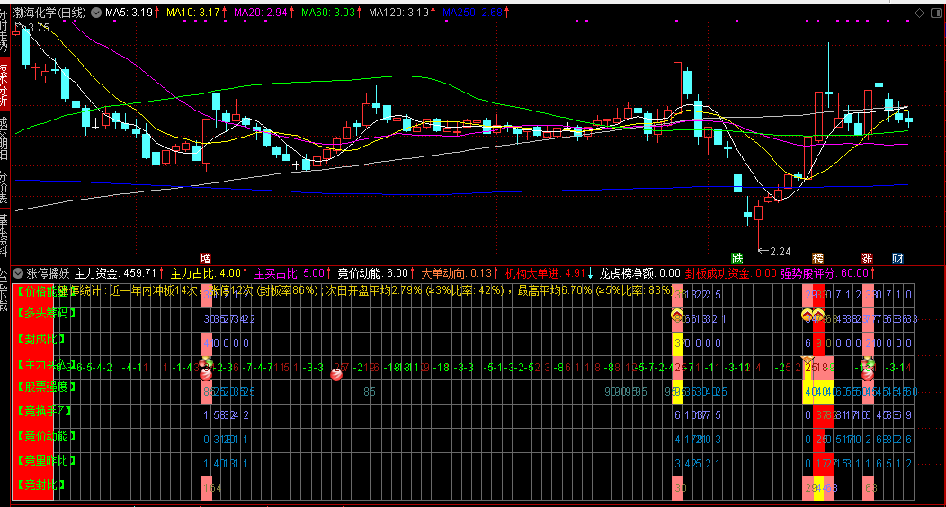 涨停基因检测、近250日涨停次数统计、封板成功率分析、次日溢价概率测算,主力资金罗盘。