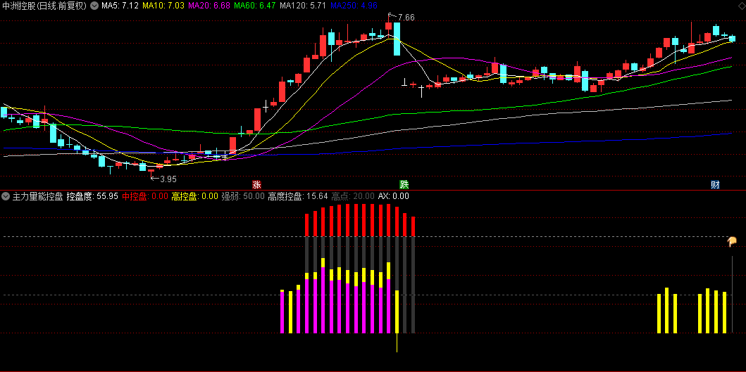 3. 控盘能量判定:整合CYC成本均线系统,结合筹码集中度分析,采用量价协同验证机制,构建多维度的主力控盘评估体系。