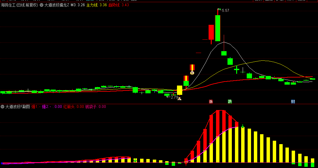 通达信【大道波段F】主图副图/选股指标,独创量价九宫格算法,波段炒作好帮手