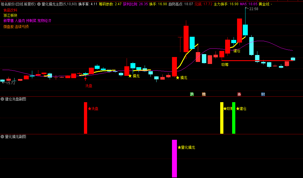 通达信【量化擒龙】主图+副图套装指标,识别调整结束信号,预示主力二次拉升,源码开放!