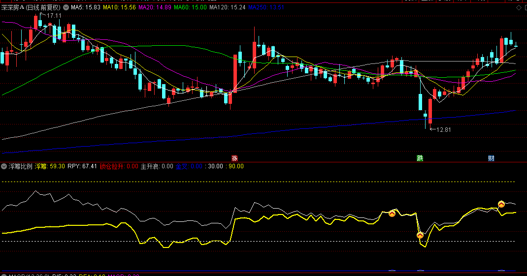 ASR(浮筹)为收盘价上下10%价格区间内所有的筹码。为什么要研究这部分筹码的变化?因为这部分的筹码是比较活跃的筹码,属于近期进场不久的散户筹码。例如ASR值80,说明代表80%以上的筹码都集中在当前收盘价附近上下10%这个范围。利用它的这种特性可以推导出如果一个股未来要走牛的话,它其中的主力会在启动前拥有大量筹码,换句话说ASR数值要很大,我的观察使用中大于90为好。