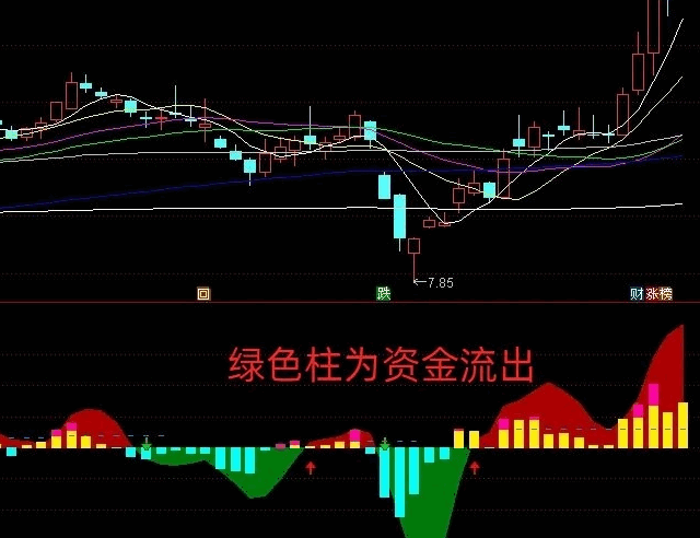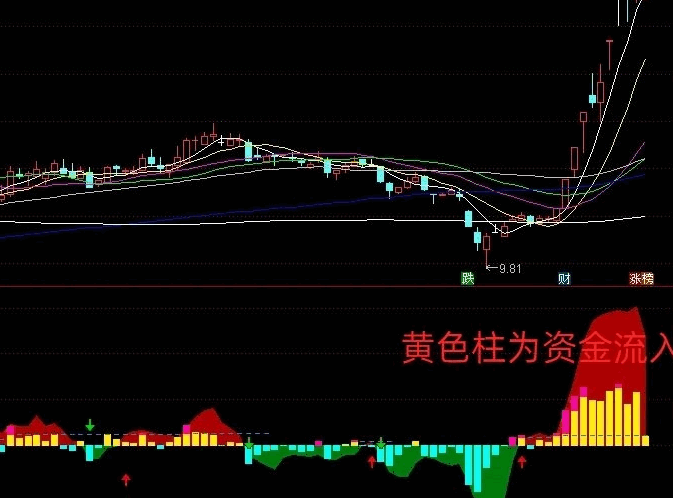 1.短期资金流以黄绿柱状图直观显示:黄色柱体代表资金净流入,绿色柱体提示资金撤离;