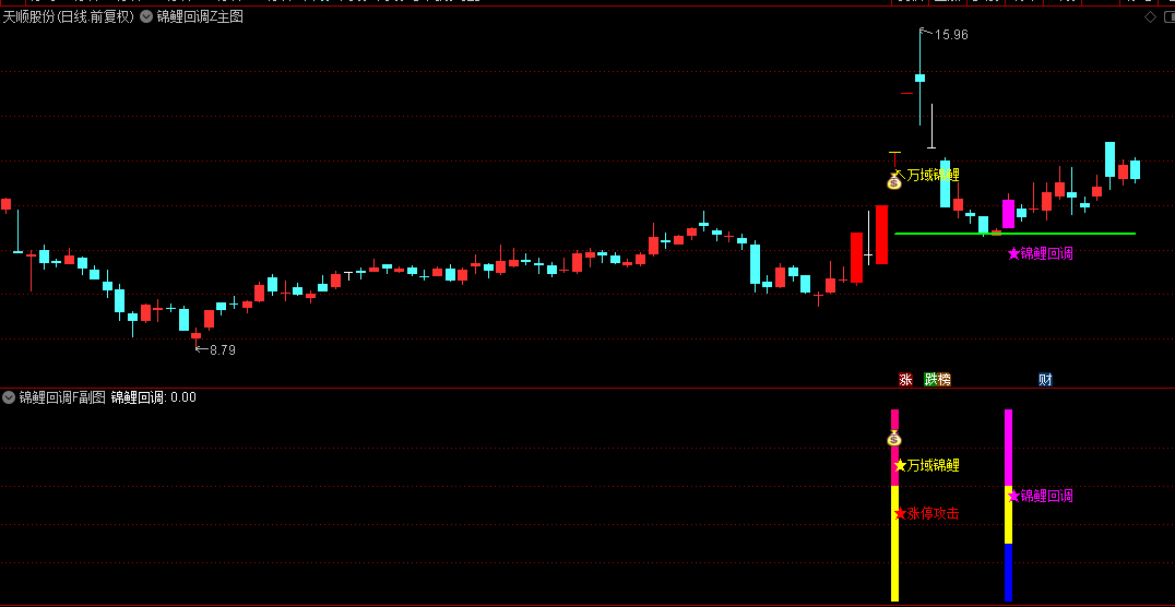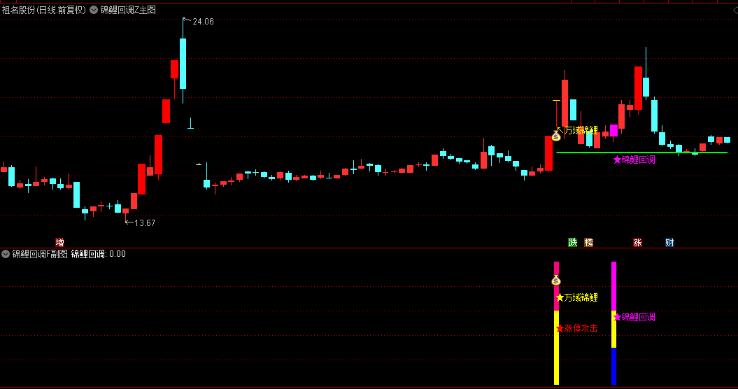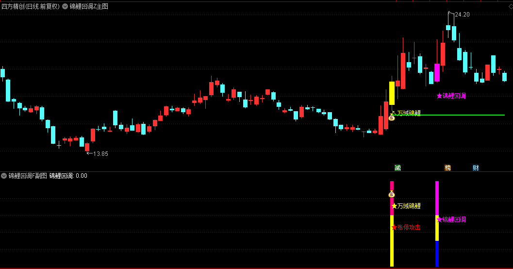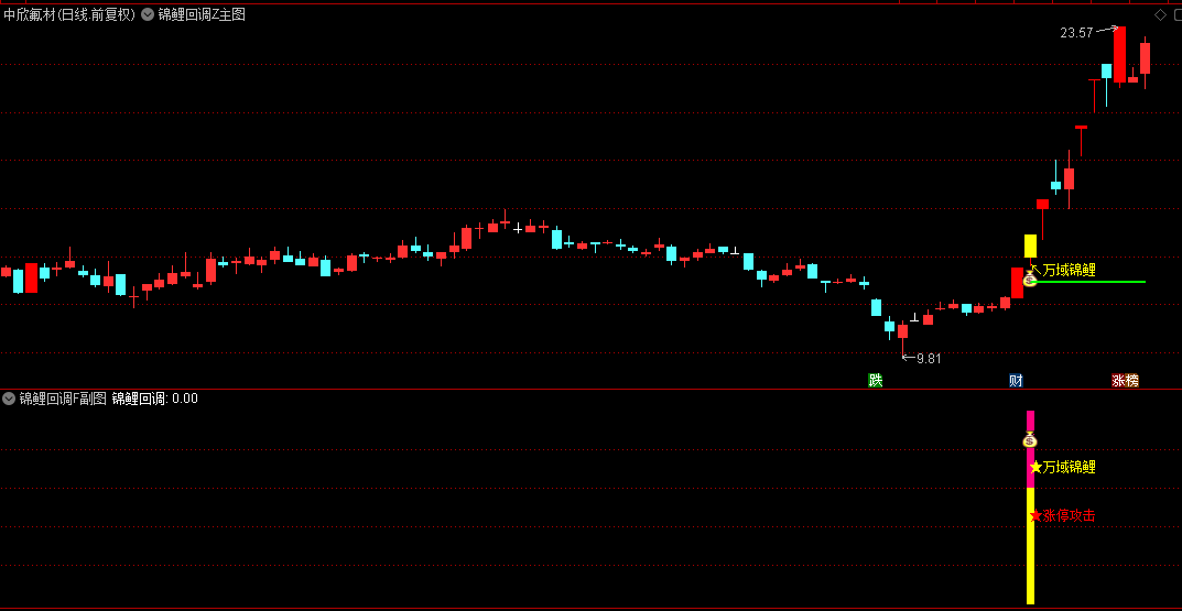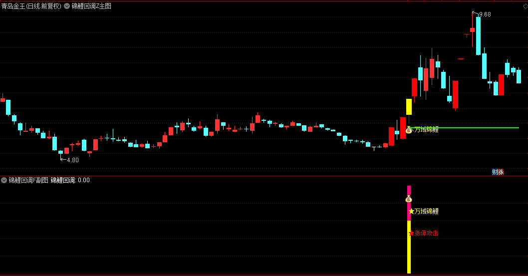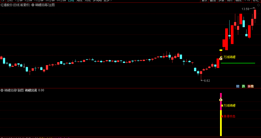 优化升级版【万域锦鲤回调】主图/副图/选股指标,一进二模式,趋势超级短线辅助工具解析!