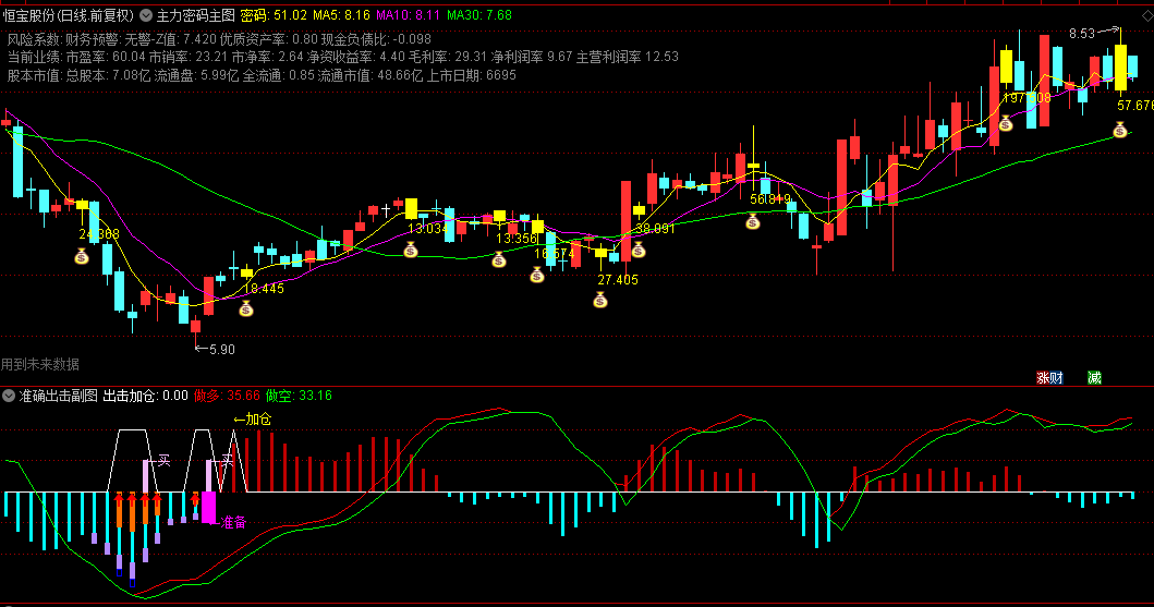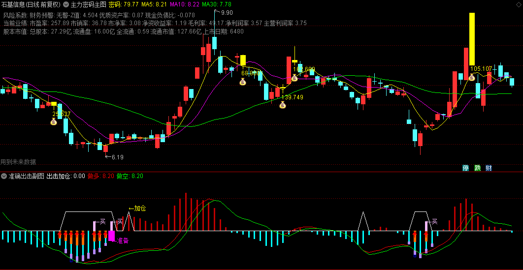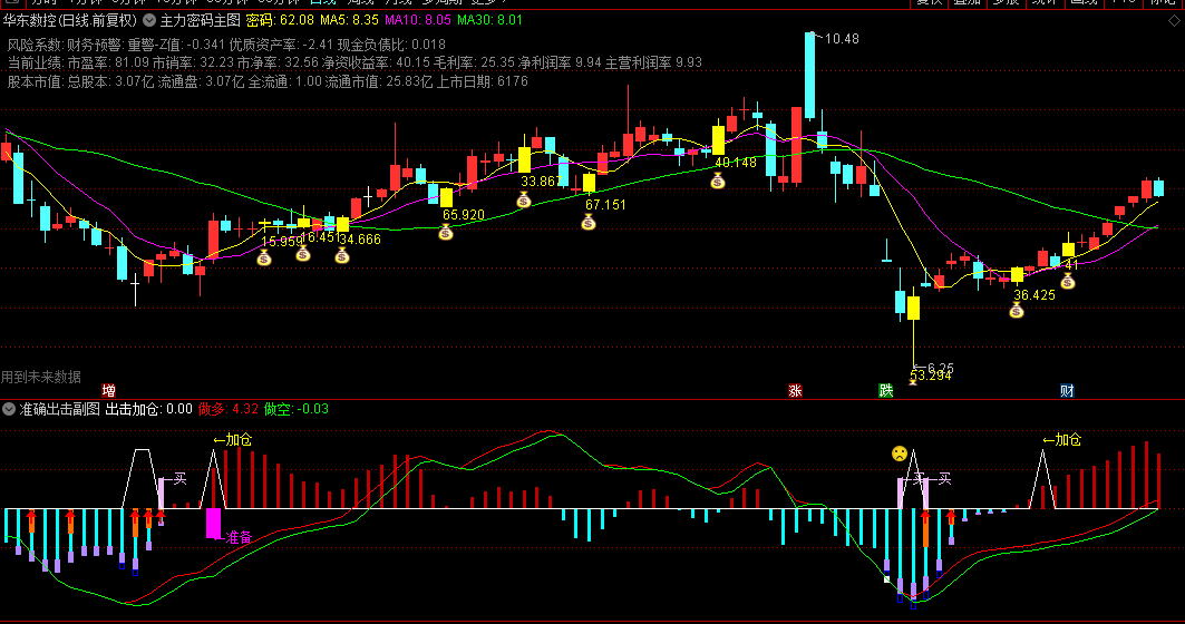 分享非原创【准确出击】副图指标,配合【主力密码】主图进行波段操作,胜算大大提高!