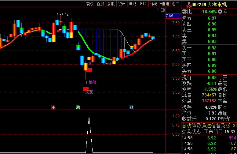 既然是天残地缺,那么只出现一个当然就不算完整,所以完整的信号是天残地缺同时出现或者间隔时间不久相继出现,往往是底部信号,后面很多都是大妖;