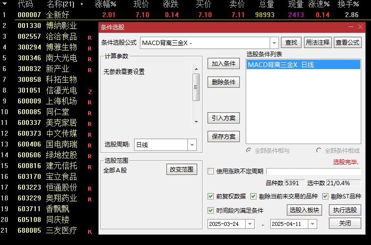 3.选股器特别适用于:挖掘超跌反弹机会,捕捉中长期趋势反转初期标的。