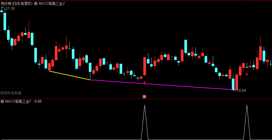【MACD背离三金叉】主图/副图/选股指标,三重滤网减少假信号,可视化趋势线辅助判断!