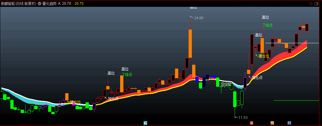 此指标一看就明白,红色趋势带向上,K线红色,回调到趋势线附近低吸,远离趋势线高抛,量化想割韭菜都难。