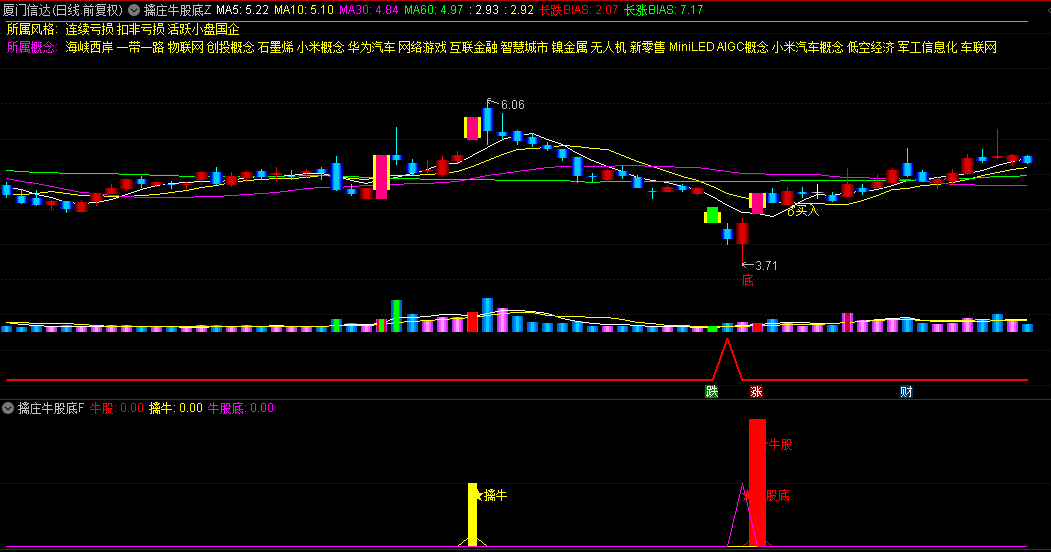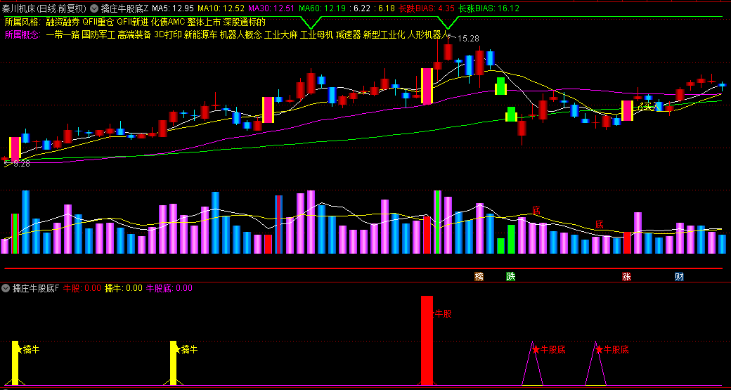 3.牛股底提示:当股价出现超跌反弹机会时,显示"★牛股底";结合BIAS指标的多周期综合判断。