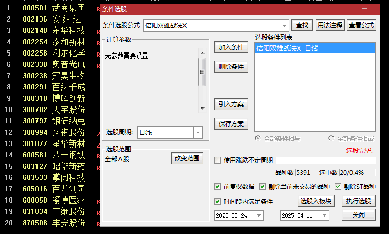 2.适用于流动性较好的中小盘股,日均成交3亿以上。