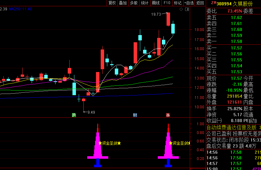 1.资金圣剑指标以资金为切入点,检测庄家资金的入场、拉升、洗盘、再次拉升、出货等的全过程,以尽可能准确且后续拉升概率较大的位置提示信号。