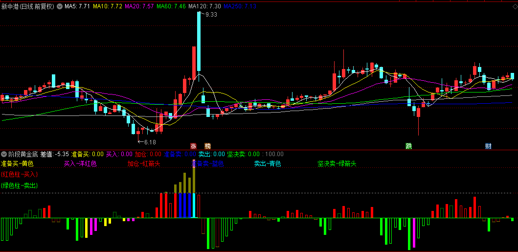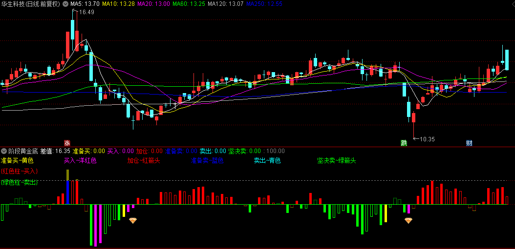 通达信【阶段黄金底】副图指标,出现砖石+箭头关注,无未来函数,涨停你跑吗