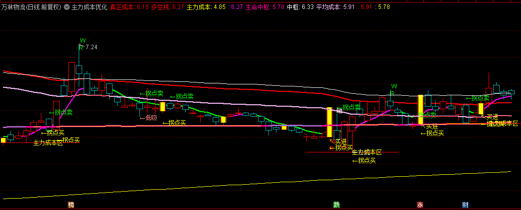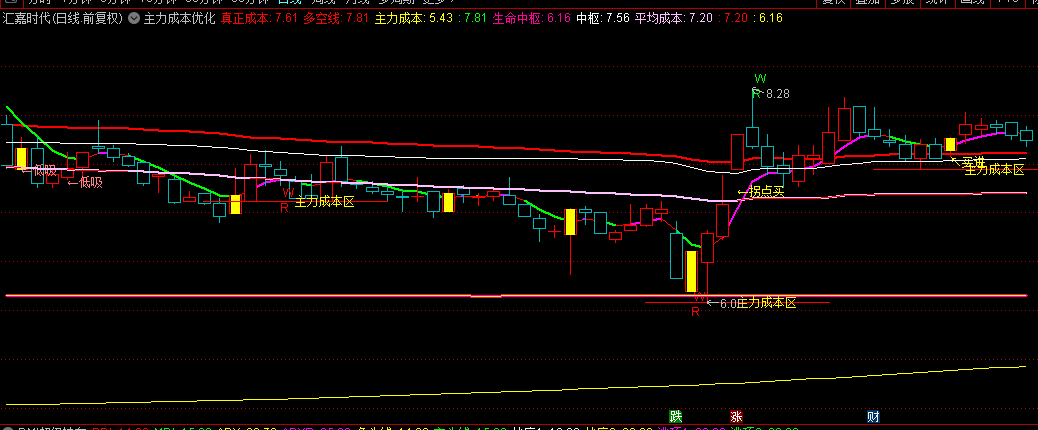 1.主力成本线:红色粗线直观显示主力资金的真实持仓成本,股价上穿此线往往预示主升行情启动。