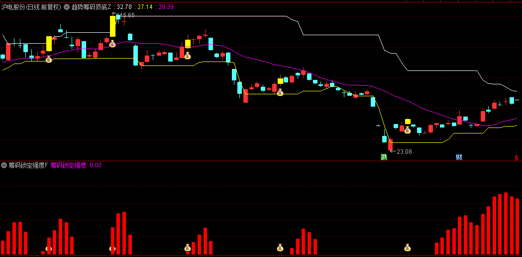 通达信【趋势筹码顶底】主图+【筹码锁定强度】副图指标,把握大趋势方向,洞察筹码稳定程度!