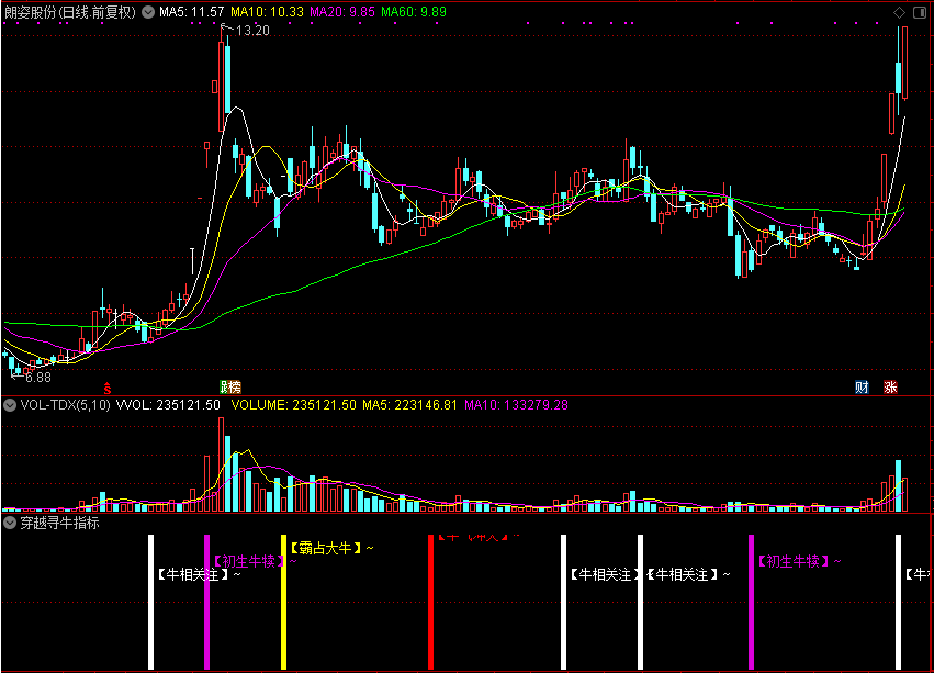 DRAWTEXT(牛牛=1,1,' 【牛气冲天】~'),COLORRED;
