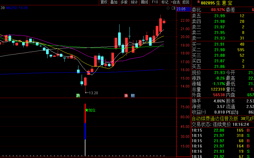 当大盘处于上升趋势时,本指标信号的准确率将显著提升。
