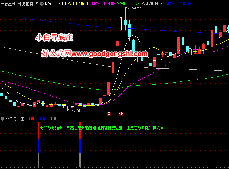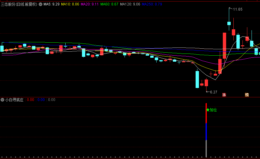 【小白寻底庄】副图/选股指标,出现彩色柱状条时,表明个股进入关注区间!