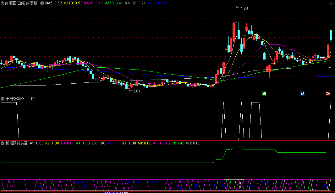 YXM【板后阴线买】副图/选股指标,板后缩量调整3-13日阴线买,修改自唐长路老师板后三阴源码