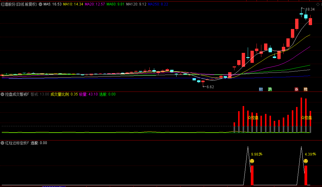 该系统包含【红柱达标定妖】主图信号和【控盘成交警戒】副图指标两大核心组件。