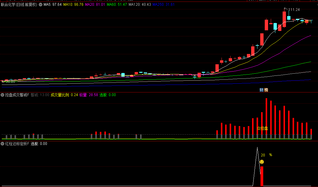 通达信【红柱达标定妖】副图/选股指标+【控盘成交警戒】副图指标,妖股分歧之下的资金承接力度!
