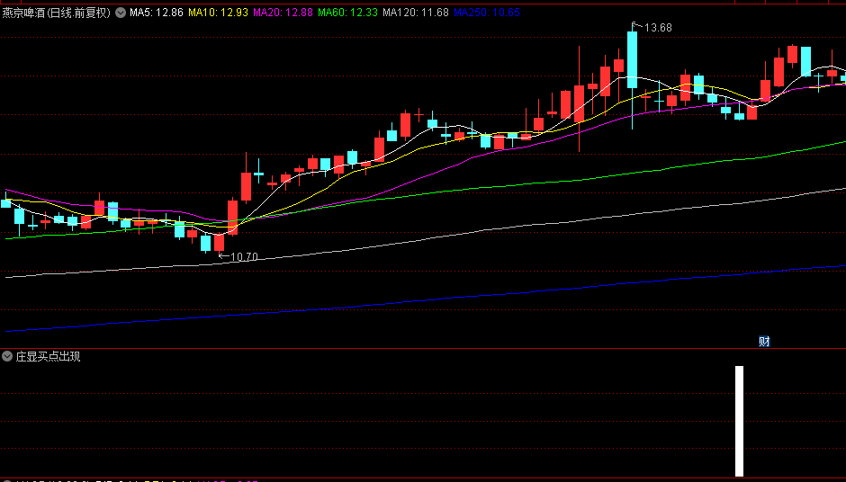 3.可视化呈现:当同时满足上述条件时,在副图区域显示白色柱状标记;信号出现位置设定在0.8高度,与常规指标形成视觉区分。