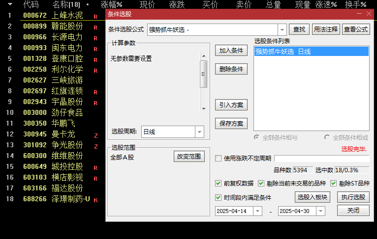 五、【强势抓牛妖】选股指标