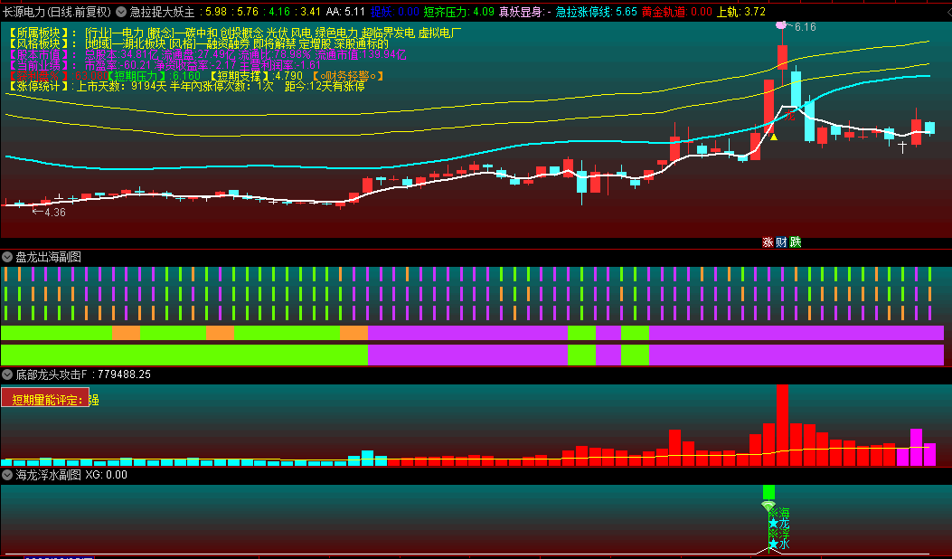 2.独创"真妖显身"预警:紫色量柱标记突破关键压力位的真龙个股;