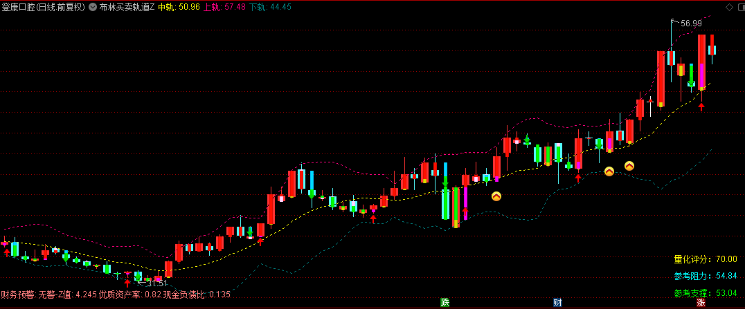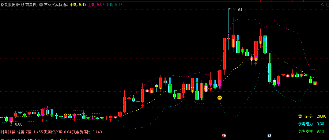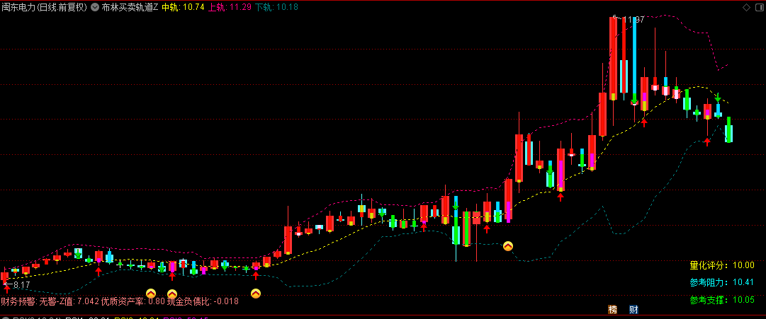 通达信【布林买卖轨道】主图指标,带有财务状况提醒,阻力与支撑提示及量化评分!