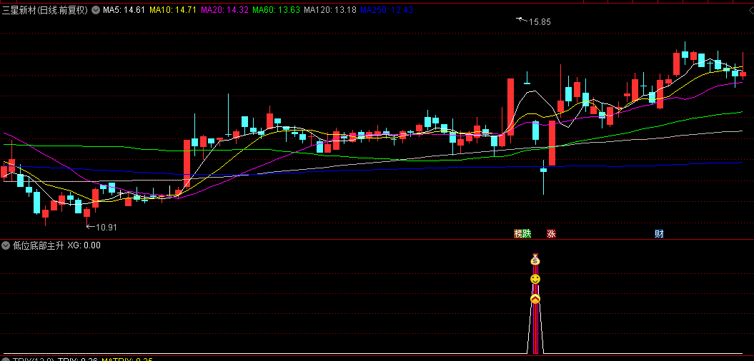 4.主升浪判定矩阵:低位主升:5/10/60日均线共振;主升浪:5/10/20日均线合力;大主升浪:10/20/60日中长期确认;四线共振时触发"总主升"顶级信号。