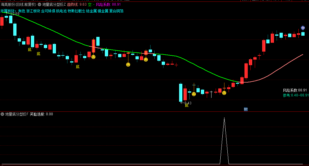 2)多指标协同:建议结合MACD副图指标进行综合判断,当副图出现红柱扩散且主图同步出现"笑脸"买入信号时,可作为较佳介入时机。
