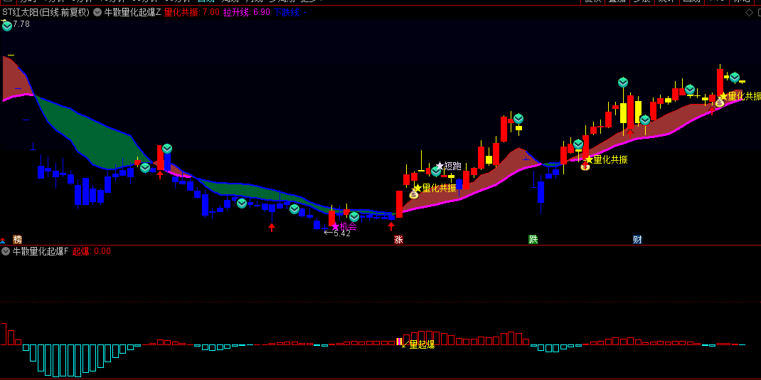 牛散量化起爆指标系统是一套集成了主图、副图和选股功能的综合性技术分析工具,专为股票市场短线交易设计。