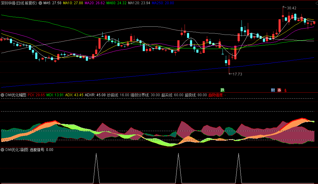 【DMI优化】副图/选股指标,PDI上穿MDI金叉,且ADX大于ADXR,是买入趋势确认!