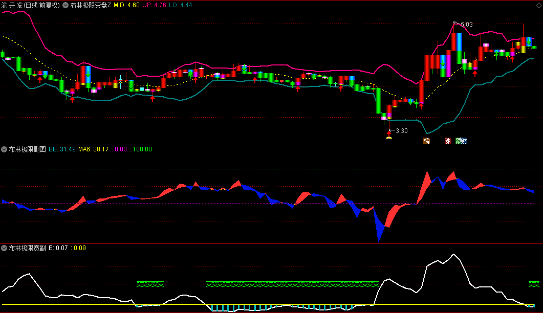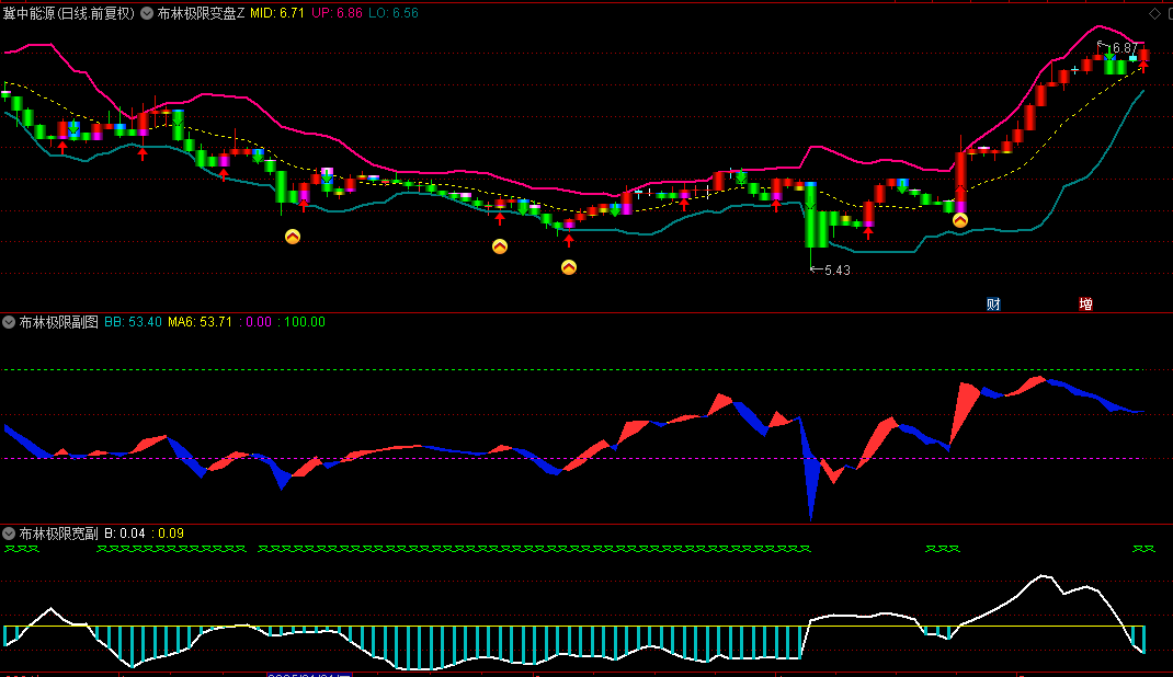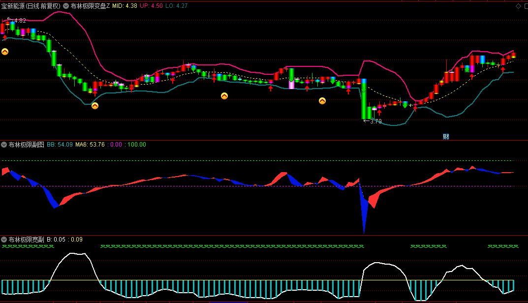 布林极限宽指标创新性地解决了这一难题,为交易者提供了客观的量化标准。布林极限指标则进一步明确了突破方向: