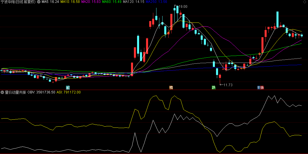 3.共振强度:两线间距变化反映量价配合程度,间距扩大代表趋势加速,间距收敛预示行情可能进入调整阶段。