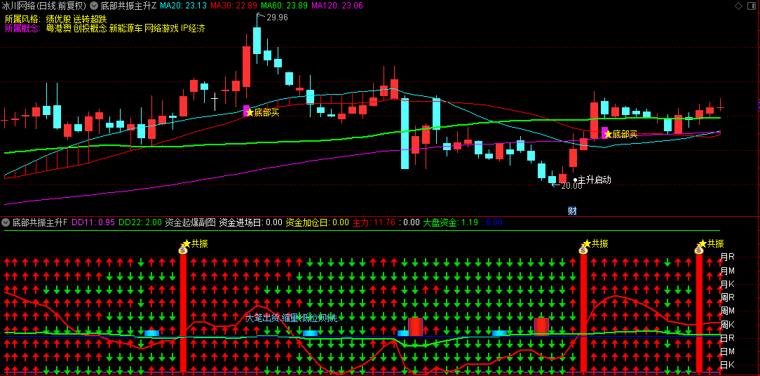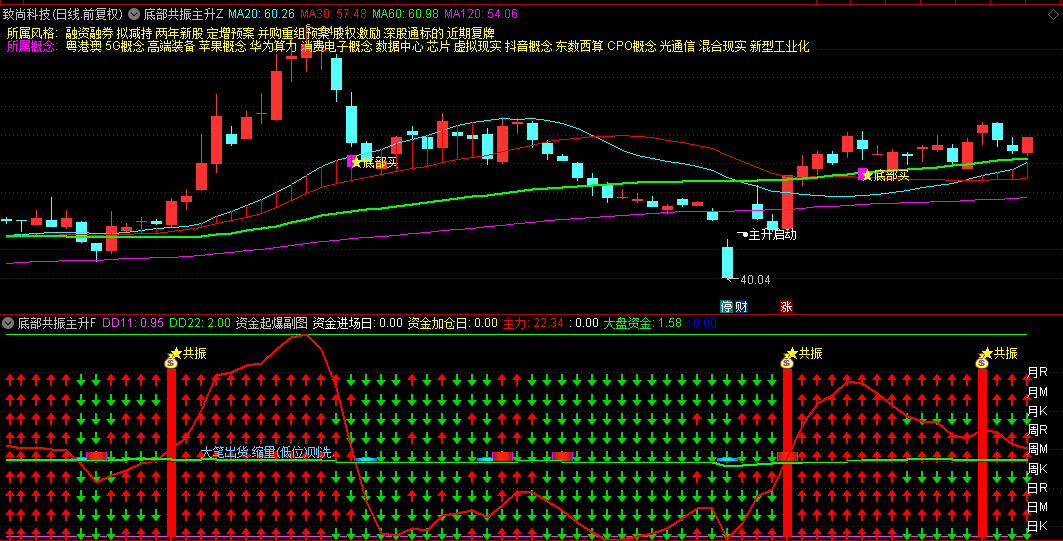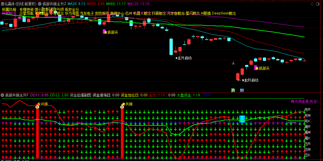 通达信【底部共振主升】主图/副图/选股指标,下跌动能充分释放,共振确认方可入场