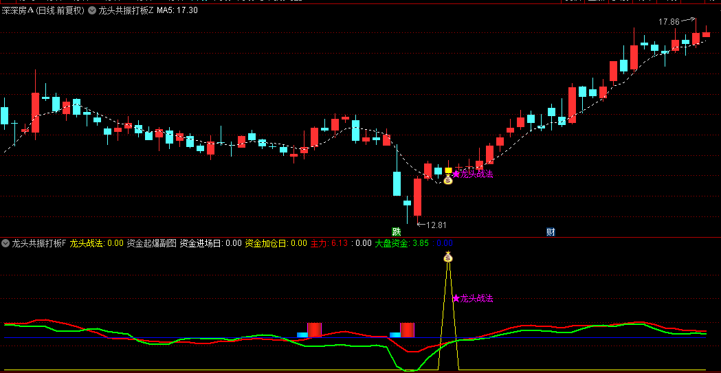 3.在最低价位置显示玫红色"★龙头战法"提示;