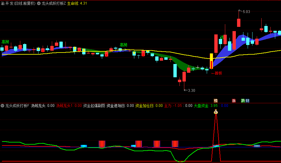 该指标系统将复杂的龙头股炒作逻辑转化为直观的技术信号,大大降低了普通投资者参与强势股交易的难度,是短线操作的得力助手。