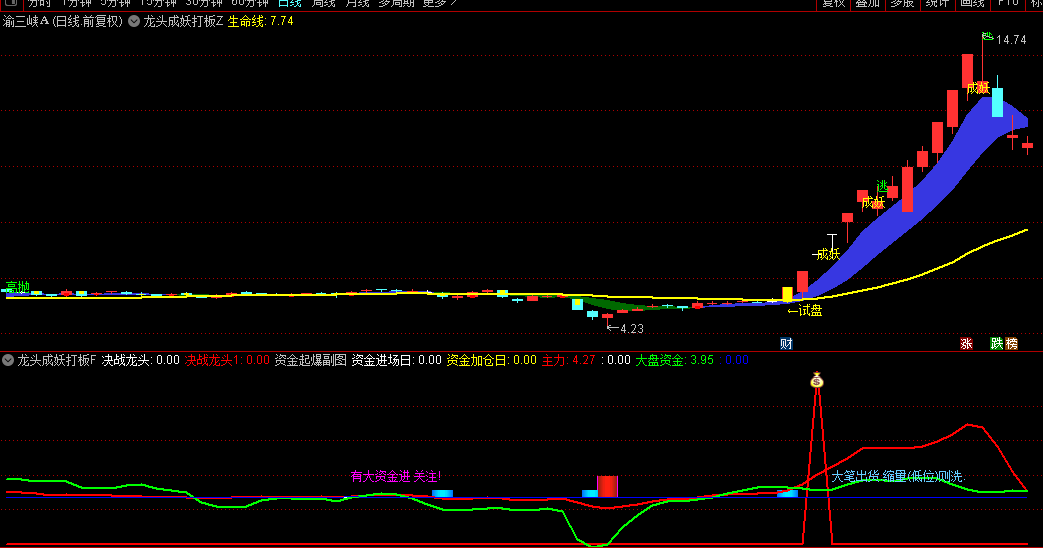 2.龙头决战信号:当个股同时满足多重强势条件时,发出明确的买入信号;