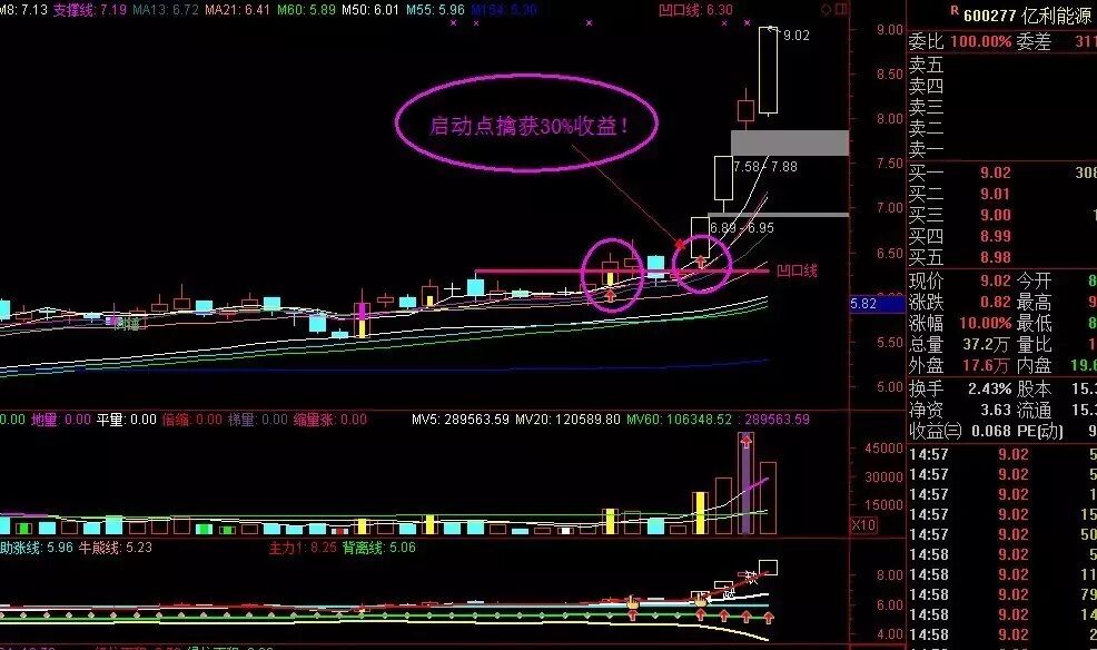 也正因为这个,凹口淘金,就不仅是成了我们最常见、最能伏击到涨停的实战技巧,还成了我们擒住牛股、妖股,骑着它上九天揽明月的绝世武功!