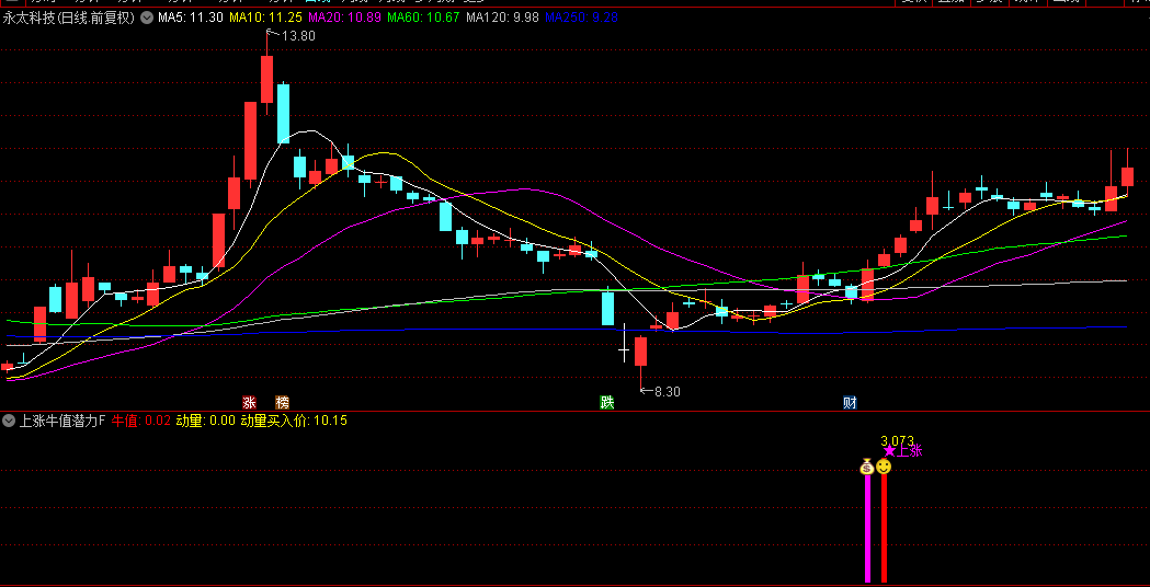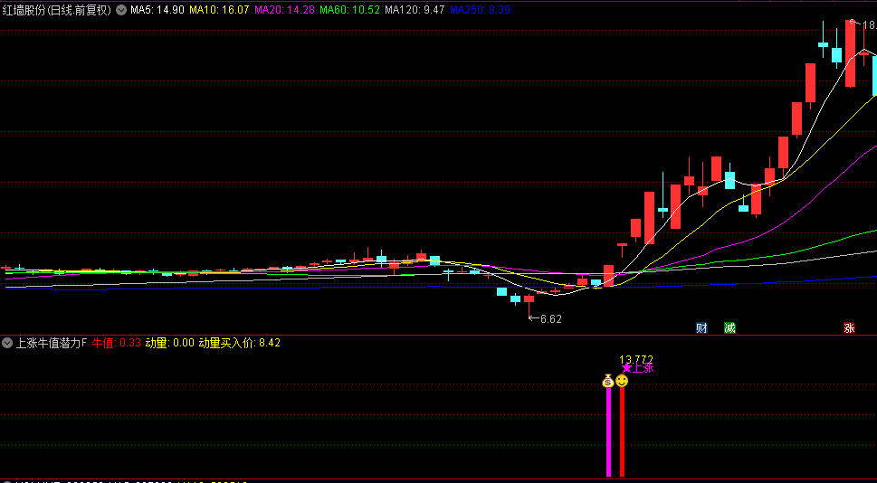 通达信【上涨牛值潜力】副图+选股指标,量化显示突破关键位,智能测算潜在上涨空间!