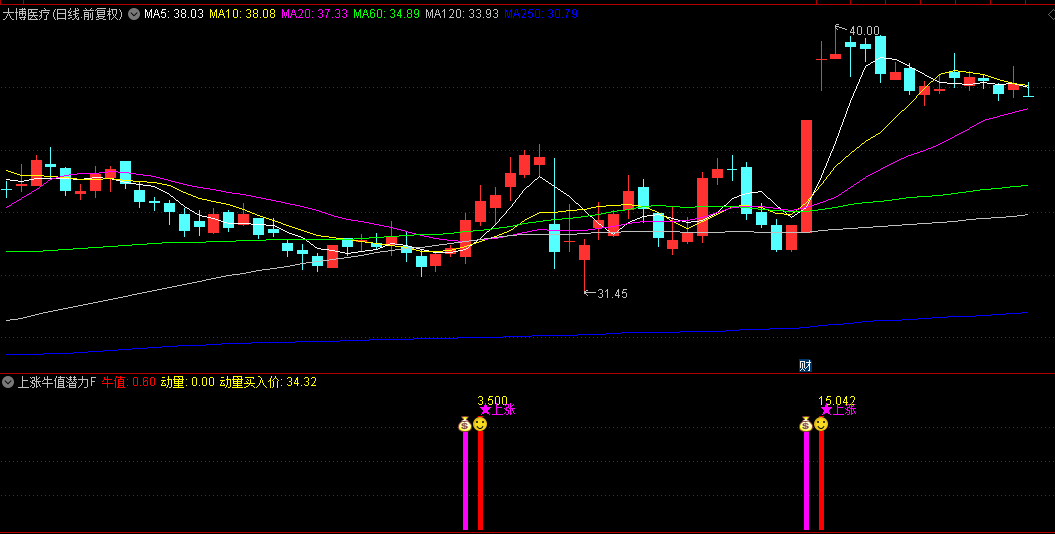 "金牛突破2"指标量化显示突破关键位时的价格基准。