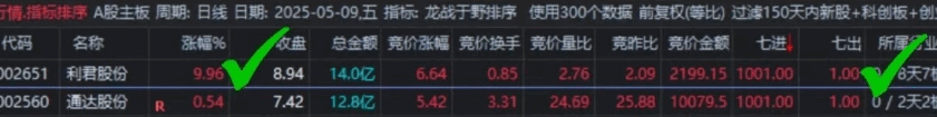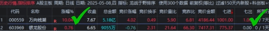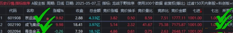 七进七出【龙战于野】副图/选股指标,竞价排序,9.25分到9.30分点击.401进行排序!