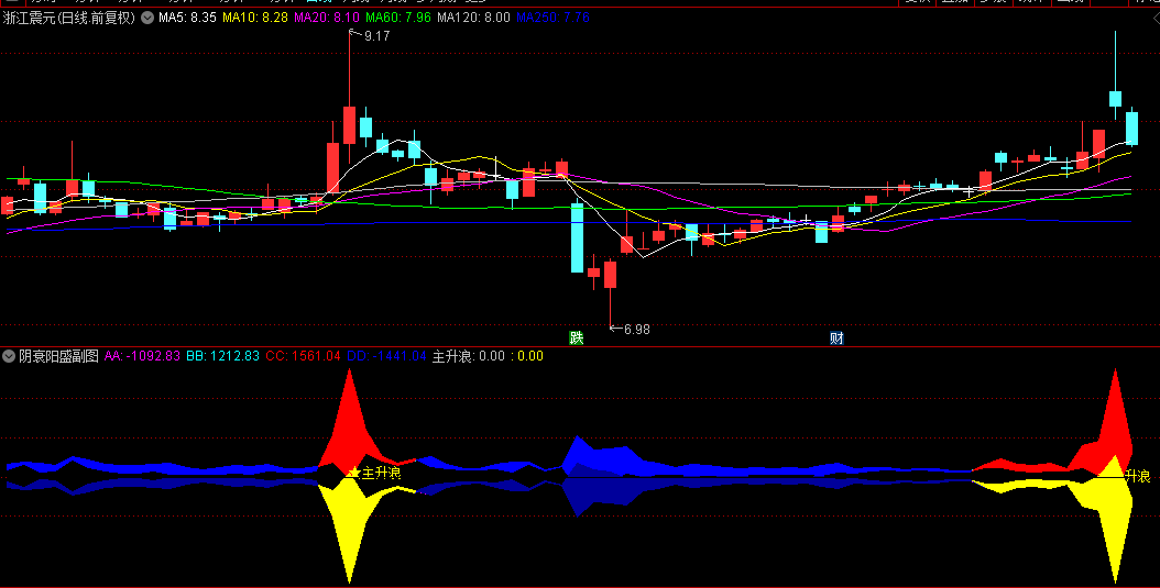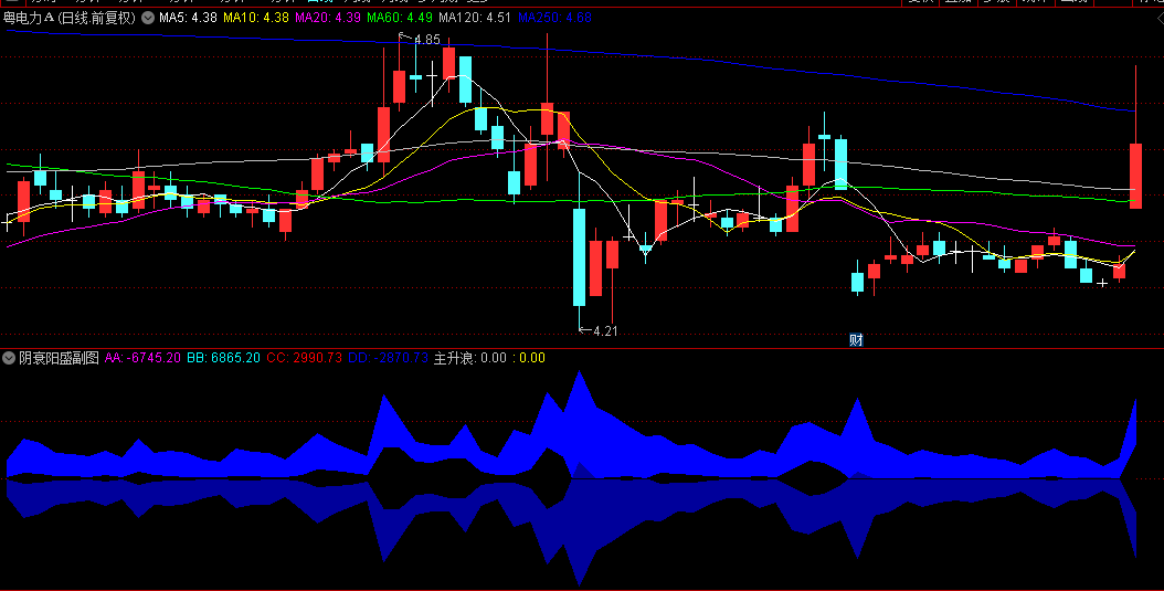 3、蓝色上下贴合为至阴,一旦分开就是短线低吸点。