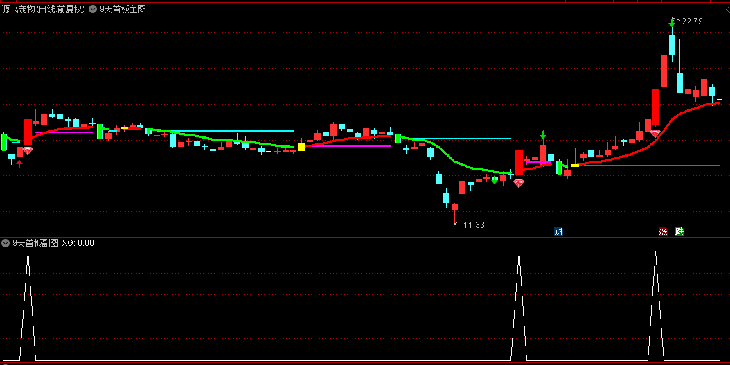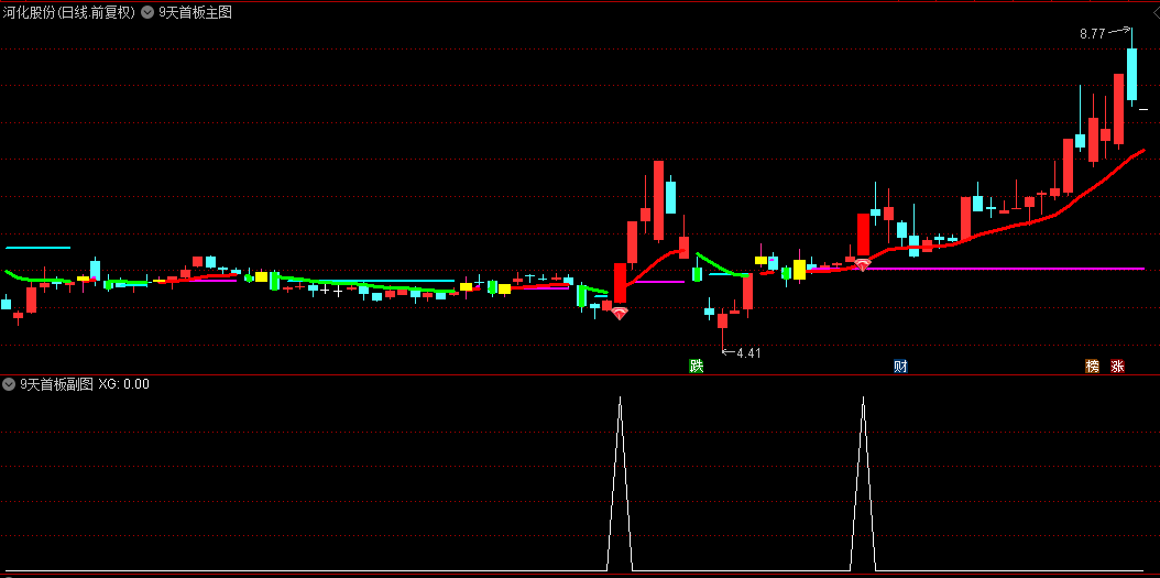 通达信【9天首板】主图/副图/选股指标,黄色k线是首次拐点信号,首板的经典战法!