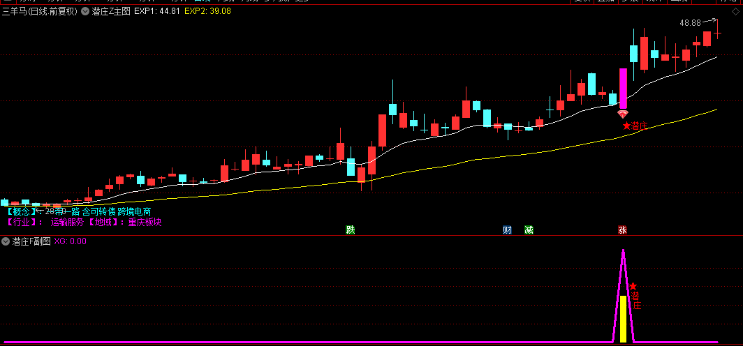 潜庄是一个相对低位潜伏指标,低位潜伏,等待庄家拉升,优点是介入位置低,不追高,风险小,盈亏比高。