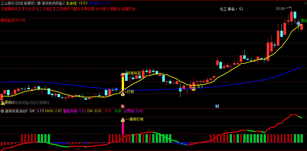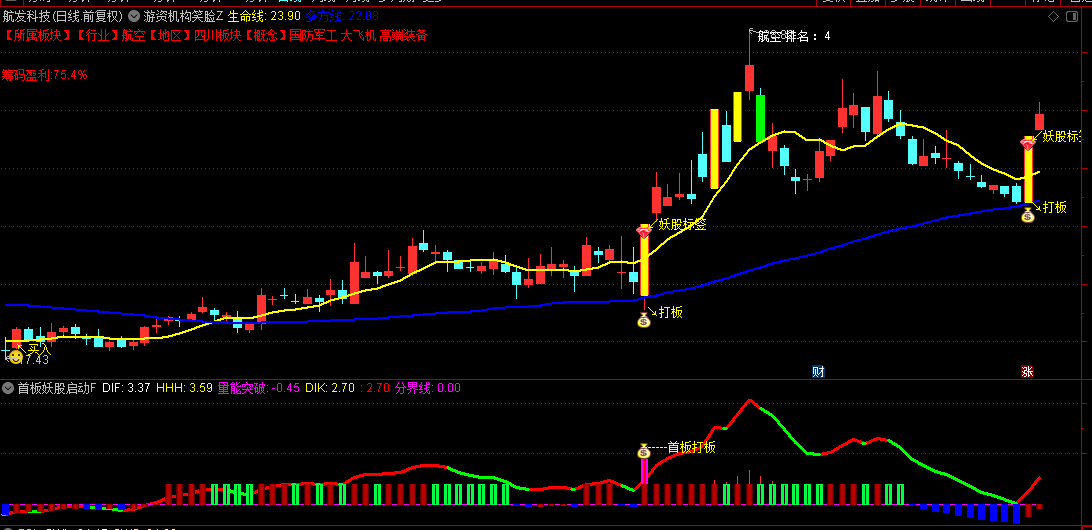 通达信【游资机构笑脸潜伏捉妖】主图+【首板妖股启动】幅图和选股指标,确定的打板机会!