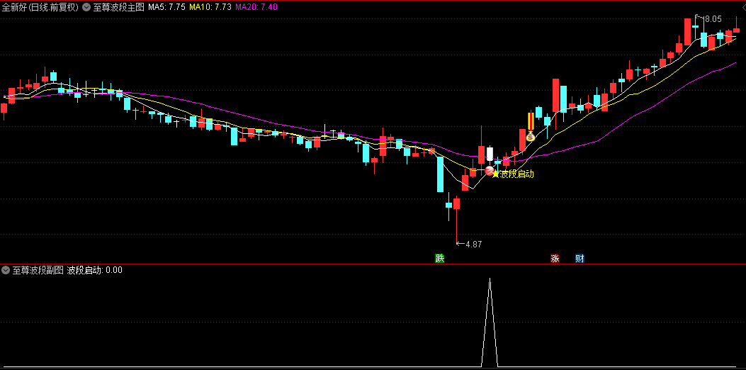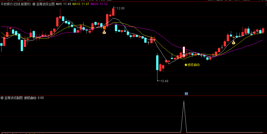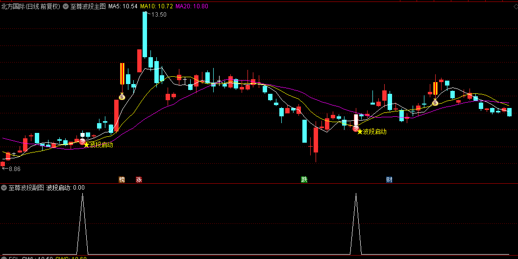 【至尊波段】主图/副图/选股指标,红色细K线确认波段信号,白色K线强烈启动信号!