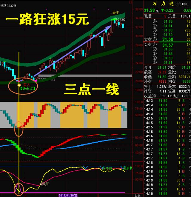 势–趋势通道;通过ER收益回归线的上涨和水平趋势通道上选择潜力股,K线打到下轨道买入,涨到上轨道抛出,3点一线多重指标确认的方法,确保轻易买到强势好股。