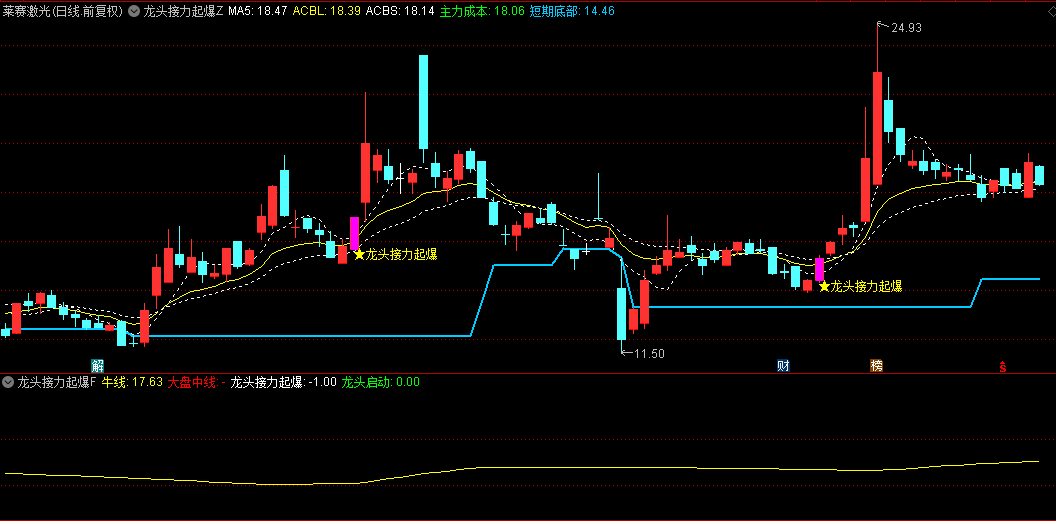【龙头接力起爆】主图/副图/选股指标,独创五线谱成本体系,通过三色带状划分多空区域!